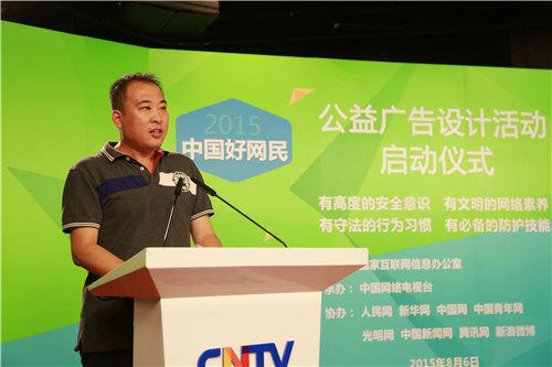 8月6日上午,“2015中国好网民”公益广告设计活动启动仪式在中国网络电视台举行。国家互联网信办公室网络社会工作局局长章勋宏、副局长孙爱萍、中央电视台副台长袁正明、中国网络电视台相关领导以及协办媒体代表和20余家新闻单位代表出席了启动仪式。