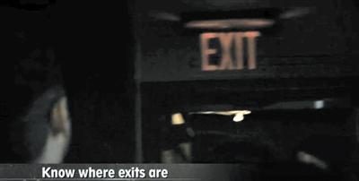 到任何公共场合前,一定要先留意紧急出口(图10)以防万一。遇到拥挤不要慌,步子稳别跌倒是第一要务,东西掉了不要捡(图11)。如果跌倒,试着抓住别人的衣服站起身来,如果站不起来护住头部往远离人群的角落移动(图12)。