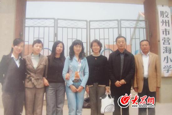 周加慧(右二)在青岛胶州市营海小学送课时与老师们的合影。