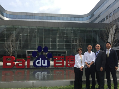 左起:佐治亚理工学院国际事务发展副总裁MartaGarcia、百度传课市场商务部负责人袁志国、佐治亚理工学院教务长&执行副校长Rafael L. Bra、佐治亚理工学院亚太事务发展总裁Shelton Chan