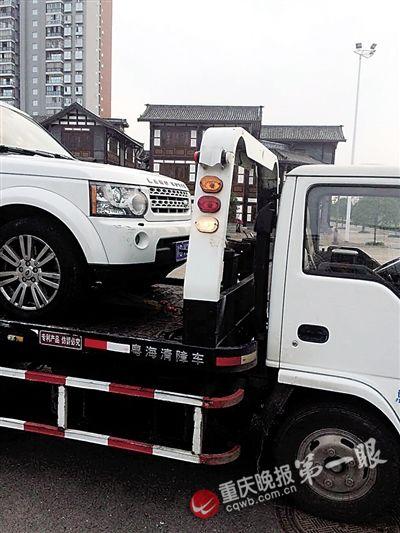 无奈的石先生通过保险公司的拖车服务,把车子拖到了主城新牌坊一家路虎4S店。