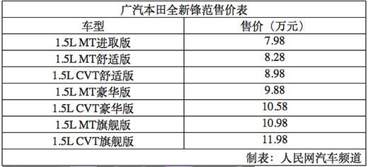 (李卓)8月28日,广汽本田在深圳举行了新车发布会,正式宣布广汽本田全新锋范上市。此次上市的全新锋范搭载了本田“地球梦科技”的1.5L i-VTEC电控燃油缸内直喷发动机,根据配置的不同共推出了7款车型,售价区间为:7.98万-11.98万元,同时享有“三年或十万公里”整车保修政策。即日起,全新锋范开始在广汽本田全国特约销售店正式发售。