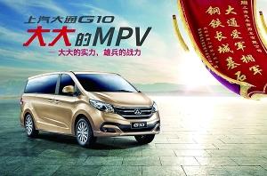 作为中国自主品牌的后起之秀,四年来,上汽大通以“大通速度”闻名业内。上汽大通G10是国内首款全领域MPV,是上汽集团凝聚全球技术实力重磅打造的又一款MPV力作,于2014年2月28日正式发布。G10定位于中高端MPV市场,具有超越同级的“前瞻设计、澎湃动力、舒享空间、全面安全、人性科技”五大亮点。这款“大大的MPV”G10以超越同级的产品优势,全面满足消费者的全领域需求,与通用别克GL8并称为“上汽MPV双雄”。