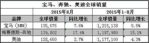 德系三强BBA 8月单月及前8月全球销量