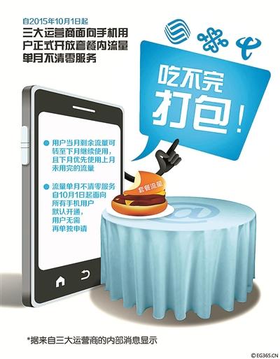 昨天,一份据称源自运营商内部的文件提前曝光。文件内容显示,自10月1日起,运营商将面向手机用户开放套餐内流量单月不清零服务。用户当月剩余流量可转存至下月继续使用。对于套餐流量当月不清零,三大运营商或将在近日正式公布,同步执行。