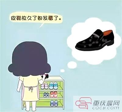 在潮湿的天气下,皮鞋久了不穿,很容易生霉斑。出门想要光鲜亮丽,还得从头到脚哟!