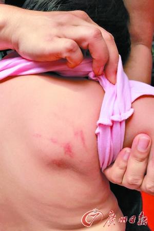 王先生的女儿妞妞今年3岁,在东城一家幼儿园读书,本月14日晚上,他突然发现孩子的背部出现明显的瘀红,而且孩子也不愿意去幼儿园,家长怀疑孩子的伤是被老师掐的。