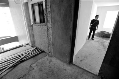 客厅里堆了大量的水泥,厨房和生活阳台的一堵墙已经被完全敲掉,卫生间的地面,一层刚刚做好的防水面尚未完全干透……昨日下午,陈锋带着成都商报记者来到人居锦尚春天A区11栋1单元2401号房,这套房子在三天前,停止了装修施工。