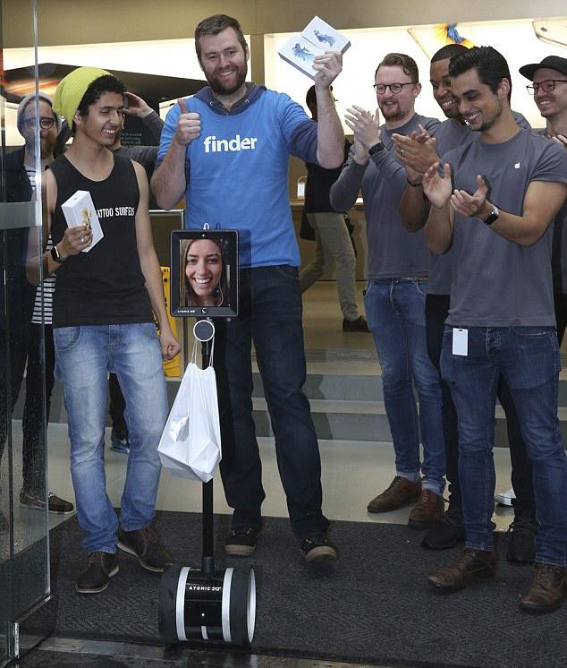 当地时间9月24日凌晨5时,露西·凯莉(Lucy Kelly)把机器人安放在了等候购买iPhone 6s的队伍中,代替她排队等待。这样,她不必耽误工作,也不必忍受湿寒站、在大雨中苦苦排队等候,而是利用远程遥控,通过iPad来实时了解情况。随后商店导购员会把买来的iPhone手机绑在机器人上,让它带走。