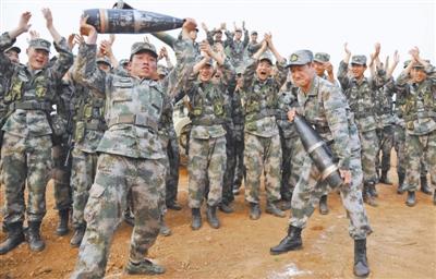 济南军区某旅党委“一班人”深入基层连队与官兵打成一片,旅副政委秦勇(前右)训练间隙接受官兵挑战,点燃练兵热情。杨广辉摄