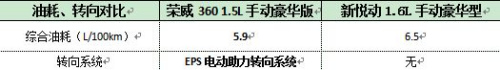 新悦动1.6L手动豪华型搭载了1.6L发动机和5速手动变速箱,综合百公里最低油耗为6.5L,且没有配备电动转向系统,仅为机械液压助力,转向轻便性和高速时的操纵稳定性比搭载EPS的荣威360稍弱。