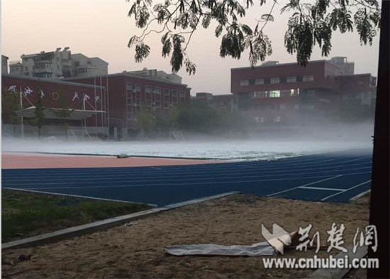 10月26日,记者来到武汉市常青第一学校进行实地探访,站在操场上的确能闻到一股淡淡的塑料味。该校总务处张老师介绍,学校的操场翻修从今年的9月10日开始,10月初完工,在翻修期间,操场与教学楼隔离,进行的是封闭式施工,并且施工主要环节都是在国庆放假期间完成的。另外,学生出现咳嗽、流鼻血等症状的说法也不属实。
