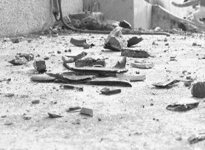 图为被砸烂的花盆。记者 巢晓 摄