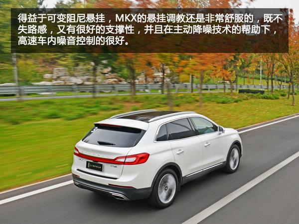 得益于可变阻尼悬挂,MKX在坑洼路的行驶中会很好的过滤掉不舒服的路感,而又保留一定的路感,并且在高速过弯时可以感觉到整体车架钢性十足,路况反馈到方向盘的感觉也很到位,底盘调教的很扎实,遇有危险时电子系统便马上介入。