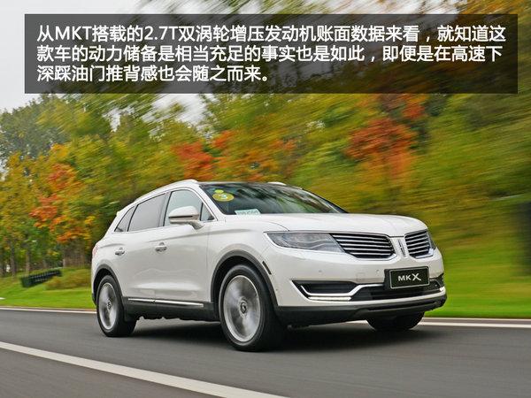 尽管MKT 2.7T是一款全驱车型,但是受到试驾条件所限制我们并没有体验这款车的全时四驱系统,基本是城市铺装路面。这款2.7T动力的MKX在行驶中动力储备非常丰富,即便是高速下深踩油门也会有源源不断的推背感。