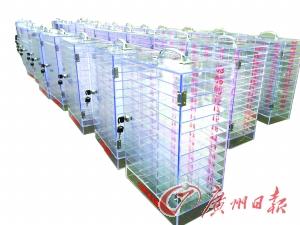 昨日下午,记者在佛科院河滨校区的启动仪式上见到了这个被学生戏称为“集装箱”或者“手机银行”的箱子,箱子上面还带有一把小锁。这样的箱子可存放约40部手机,并且标记有学号,老师上课时一看箱子,谁没有到课室,或者没有上交手机,就可一目了然。