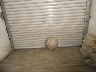 石球砸断越过护栏,通过非机动车道,撞坏了镇江建设银行地下停车库的铁门后,才停止疯狂的“奔跑”。民警介绍,失控的石球滚动“奔跑”出了近百米,幸运的是深夜路上车辆和行人稀少,不然处于闹市区其后果不堪设想。