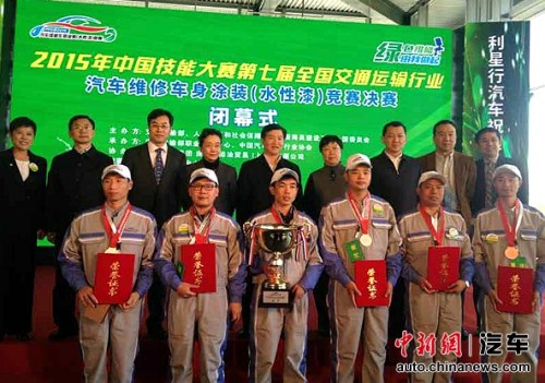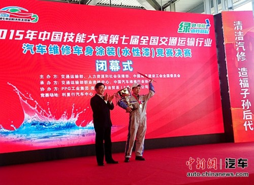 中新网10月30日电 由交通运输部、人力资源和社会保障部、中国海员建设工会全国委员会主办,交通运输部职业资格中心、中国汽车维修行业协会承办,庞贝捷漆油贸易(上海)有限公司协办的2015年中国技能大赛——第七届全国交通运输行业“PPG杯”汽车维修车身涂装(水性漆)竞赛总决赛于2015年10月27-30日在北京利星行钣喷中心成功举办。这是交通运输行业首次对车身涂装的单列竞赛并全程使用环保绿色的水性色漆和低VOC高固涂料作为比赛用漆的国家一类赛事。