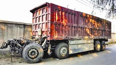 李先生的京牌大货与冀牌大货相撞后,两车破损不堪