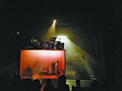而伴随幕布拉开,小宋讶异地发现,自己面对的居然是观众席,演员们正缓缓从过道台阶上走来,进入搭建的“房间”。