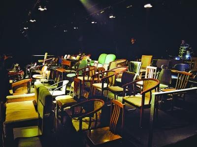 《飞向天空的人》同样在形式上玩了一把创新,当散场灯光亮起,小宋瞪大眼睛,发现自己居然坐在舞台上,周围5排120把椅子没有一把重样——为了让观众能够更近看到“房间”内的状态细节,他们被安排上台,演员在观众席表演,剧场被翻转了!