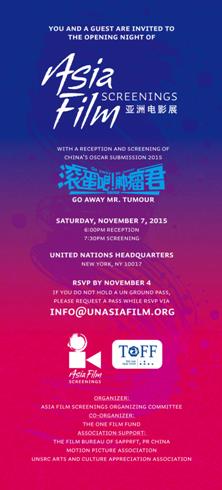 中新网11月9日电 纽约当地时间11月7日下午,由亚洲电影展组委会主办、一壹影视基金联办的首届亚洲电影展于联合国纽约总部拉开序幕。此次电影展得到了中国国家新闻出版广电总局电影总局、美国电影协会、联合国UNSRC ARTS AND CULTUcRE APPRECIATION ASSOCIATION 的大力支持。美国电影协会中国区主席冯伟、联合国文明联盟项目总监Jordi Torrent、联合国妇女署主任Inga Sniukaite、纽约州州长办公室亚裔事务主任兼贸易总监Linda Sun、中国驻纽约总领馆文化参赞李立言、一壹影视基金总裁王一洋、导演管虎以及纽约地区的华人华侨出席了本届电影展的首映会。