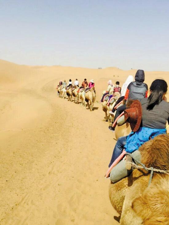 旅游区内,骑骆驼、滑沙、羊皮筏子漂流、冲浪越野车等游乐项目应接不暇,惊险刺激,建议买一张通票,两百多元一个人,痛痛快快玩得过瘾、拍个尽兴!
