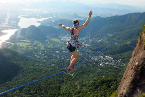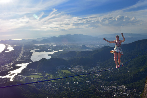 据报道,这位26岁的杂技演员演员名叫费思•迪基,来自美国得克萨斯州。初次来到巴西就表演了这项惊人绝技,让大家印象深刻。