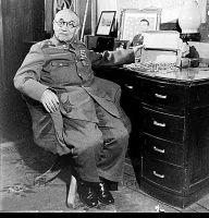 阎锡山有一张照片曾广为流传,还登载在1949年美国《时代》周刊姊妹刊《生活》画刊上:一身戎装的阎锡山坐在太原的指挥部书桌旁,桌上摆放着“飞虎队”陈纳德将军和马歇尔将军的照片,面前的桌子上摊着一盒胶囊。很多人知道,这张照片是太原解放前,阎锡山为了表明坚守太原的决心专门找记者拍的。