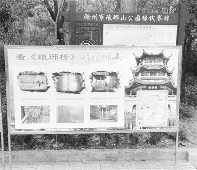 她告诉记者,剧中反复提到琅琊山、琅琊阁,让她对滁州琅琊山风景区产生了浓厚兴趣,她饶有兴趣的对记者举例,楼阁飞檐翘角的式样,还有雕梁画柱都显得古朴大方,不过她说她也是刚才听保安说,这个牌子是刚挂上的。