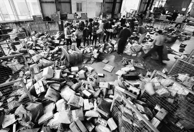 昨天上午一家快递公司的货仓里,铺天盖地堆满了快递。每年双11疯狂买买买之后,紧接着就是对快递物流的严峻考验和大量的退换货。东方IC供图