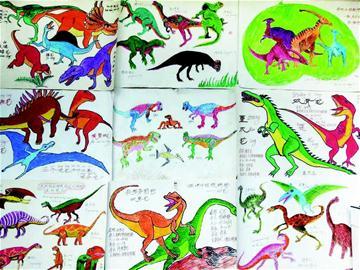 赵荣庆说,其实,在看孙子之前,他还给大外孙画过不少恐龙。因给孙子画的“教材”没带回来,老人就把30多张留在家里的“恐龙画”找出来给记者看。
