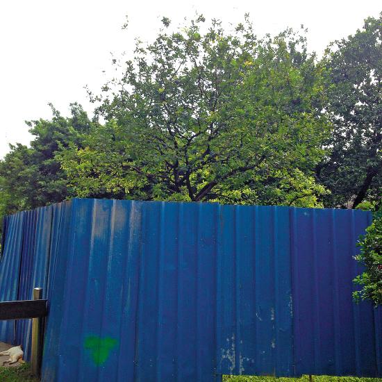 记者留意到,被围蔽的不仅仅是食肆会所,就连在流花西苑内的一棵大树也被单独围蔽起来(见下图)。这棵大树来头可不小,它是1986年10月18日,英国女王伊丽莎白二世访华期间,亲手在流花西苑种下的、象征着中英两国友谊长存的橡树。