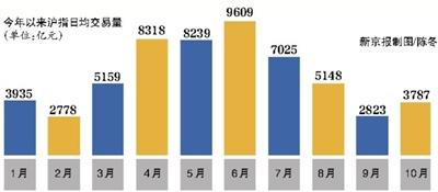 此外,10月份沪市日均交易量为3787亿元,环比增长34.1%;深市日均交易量为5080.2亿元,环比增长69.9%。
