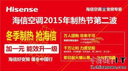中新网11月16日电 在淡季市场成功引爆之后,海信空调紧锣密鼓地发动了“制热节”第二波攻势,继续主打市场“明星”产品苹果云•炫、苹果云•润、苹果云•薄等系列智能变频精品,在延续此前的市场政策基础上还增加了“加一元能效升一级”新内容,并将于11月20日-22日三天全面引爆家电卖场,智能变频普及风暴即将迎来一个年度新高潮。