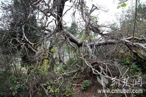 据孝昌林业部门有关人士测定,古木冲的这棵古松树系黑松,已有千余年历史,其死亡原因是开裂的主干由于蛀虫的腐蚀,没有得到及时和有效的处置。