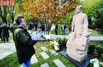 探访 向父亲雕像献花 亲手喂食小麋鹿