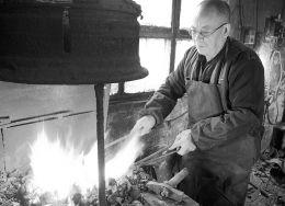 63岁的臧一万是河津樊村有名的铁匠,从事这一行已40余年。他祖辈三代都是铁匠,从小在“叮叮当当”的打铁声中成长。俗话说:“世上有三苦:打铁、撑船、磨豆腐。”不难看出打铁是最苦的行当之一。每打制一件铁具,不仅要经过选料、加温、锤打、淬火等多道繁杂工序,还特别考验眼力。打铁不像做木工,能用尺子在木板上标示出规格,只能凭借眼力,不断反复锤打,才能打造出理想铁件。由于打铁技术好,他制作的农具精致又耐用,特别是餐厨刀具更受青睐,很多人慕名前来定制,其产品远销稷山、乡宁、陕西韩城等周边县市。