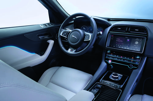 内饰方面,F-PACE 搭载InControl智能驭领 尊享触控,基于10.2英寸的触摸屏,配有InControl多媒体系统、多区自动空调、车道偏离预警以及电动后备箱等设备。