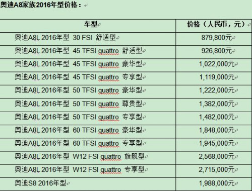 尊贵再进化 奥迪A8家族2016年型正式上市
