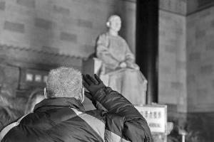 进入祭堂后,熊寿明推开了志愿者的搀扶,缓缓走到孙中山雕像前,举起右手敬了个军礼,许久没有放下。陵园管理处还专门为老人开放墓室,只有熊寿明和三个志愿者进入。绕场一周,在孙中山的汉白玉卧像前,熊寿明两度三鞠躬、敬礼。