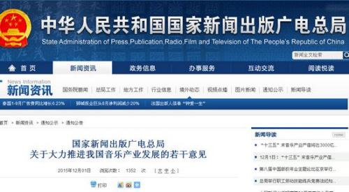 国家新闻出版广电总局关于大力推进我国音乐产业发展的若干意见
