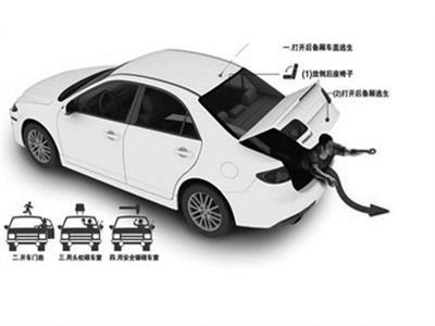 后备厢是一个很“不显眼”的逃生通道,很多被困车主往往由于惊慌失措,忽略了这条通道。目前市面上大部分汽车,都可以从车内和车外将后排座椅放倒,然后钻进后备厢,再通过后备厢的内部开启装置打开后备厢,就可以逃到车外。