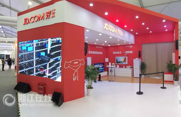 15日上午,互联网之光博览会在乌镇开幕。展会上,京东标志性的红白展台吸引了许多参会者的目光。京东展区现场负责人郑翔宇向记者展示了通过叮咚音箱操控各个家电开关的步骤。“向它发出指令’’我回家了”,此前在app上设定好程序的家电就会自动开启灯光、加湿器、窗帘;说’我要睡觉’,则会自动关闭你不需要的电器。”