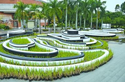广州,广东美术馆入口处的概念装置作品《周公土收藏计划·痕迹》,呈梯田状分布,里面栽种的秧苗约摸八九厘米高。开幕首日赶来的几位年轻人谈笑风生地冲进馆内,连作品名称都没有瞅一眼。