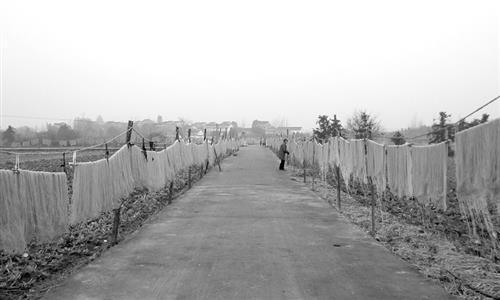 农户正在晾晒粉丝。金陵晚报记者 傅秀 摄