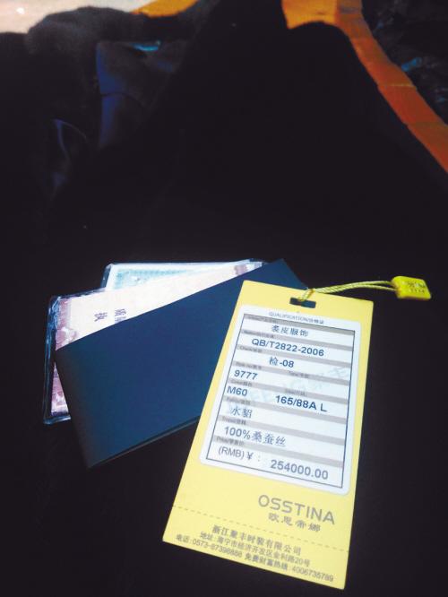 据魏女士介绍,今年11月29日,她来到位于辽阳市的佟二堡海宁皮革城,准备为自己选购一件裘皮大衣。在海宁皮革城D座的一家名叫“法国媞奥”的档口,魏女士看中了一款长款的黑色貂皮大衣。但当她看到那款大衣标价为25.4万元时,被吓了一跳。太贵了!准备放弃。但营业员告诉她,那款大衣售价只有3万多元。试穿后,魏女士对大衣的款式很满意,经过讨价还价,最终以2.2万元的价格买下。