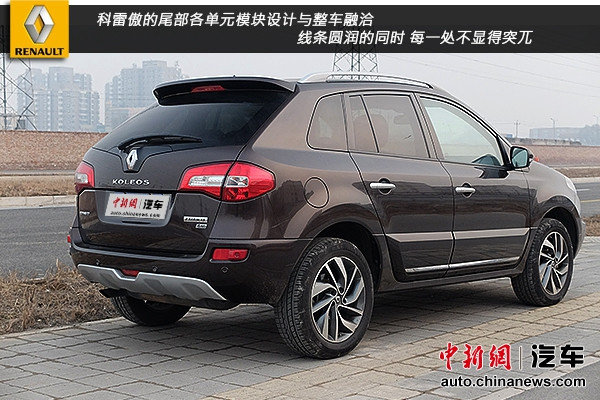 科雷傲整体风格大气,采用了更细的镀铬格栅,配合大尺寸的雷诺LOGO和全新前保险杠,增强了前脸的立体感和层次感。从车身侧面看,新科雷傲延续前款车型突出的腰线、较高的离地间隙,并新增了镀铬防擦条和全新设计的双色五幅式轮毂,轮廓饱满且颇为动感。车身尾部与众不同的设计得以保留,车顶的尾翼起到了很好的装饰效果,高位刹车灯隐藏在下面。