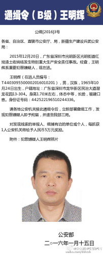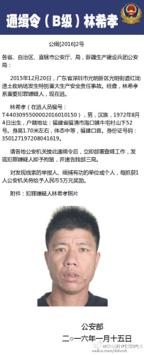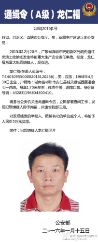 2016年1月15日,公安部发布通缉令,全国通缉在逃的犯罪嫌疑人龙仁福、王明辉、林希孝。