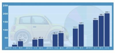 据悉,2015年示范应用新能源小客车指标3万个。其中,个人指标为2万个,按照整数平均分配原则,前五期每期为3333个,其余3335个指标在第六期分配。今年,新能源车总量增加1倍,个人指标为5.1万个。同时,不再施行购车摇号政策。